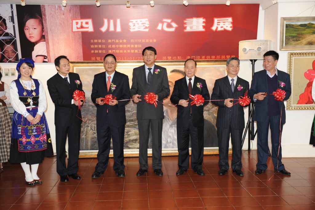 《四川愛心畫展》由澳門基金會與四川省扶貧基金會合辦,成都中聯國興書畫院協辦、澳門明珠未來發展工作室承辦,畫展於1月25日揭幕,主辦單位希望透過展覽加深澳門及四川兩地的文化交流,讓書畫藝術對心靈的關注,一起關心四川地震災害後的重建工作,支持和幫助四川貧寒學子的繼續學業。澳門中聯辦文化教育部張曉光副部長、澳門基金會行政委員會主席吳志良、四川省扶貧基金會秘書長陳宏、澳門科技發展基金會唐志堅主席、成都中聯國興書畫院副院長趙強及澳門創新科技中心主席丘竹先生等主持了開幕剪綵儀式。
