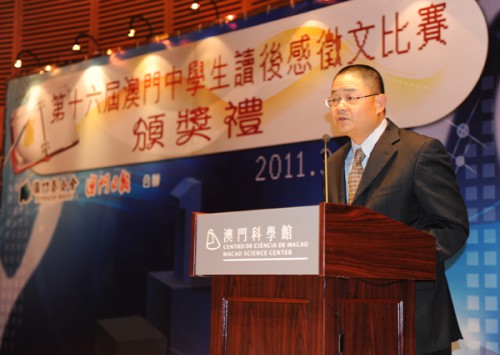 他指出,雖然推廣中學生閱讀風氣是舉辦徵文比賽的本意,但更希望透過推廣閱讀風氣,為推動澳門的生命教育貢獻綿力。是屆比賽圍繞生命教育,以“譜出生命樂章”為主題。並祝賀得奬學子今後繼續熱愛閱讀,在閱讀中忘記塵世的繁喧,尋找愉快、充實和有意義的人生,把閱讀的精彩、樂趣尤其從中得到的“正能量”,與更多人分享,感染更多同道。
