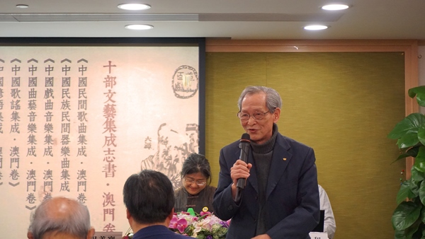 沈秉和分享了其團隊參與澳門卷編纂的過程,項目開展三年以來,經過大量深入的田野考察,搜集和整理了豐富的澳門戲曲曲藝素材,當中涉及歷史背景、曲目、場景、著名演出者等等。他從澳門粵劇和曲藝文化,探討其社會價值和影響,並強調戲曲曲藝是豐富市民大眾生活的重要元素,其影響力跨越社會各階層,深植於平民百姓以至官商名流,共享相同的時代旋律,這也是澳門戲曲曲藝發展的特點之一。沈秉和坦言這是一項時代的重任,若不及時搶救,許多珍貴的歷史片段很可能永遠消失,將是澳門的損失。