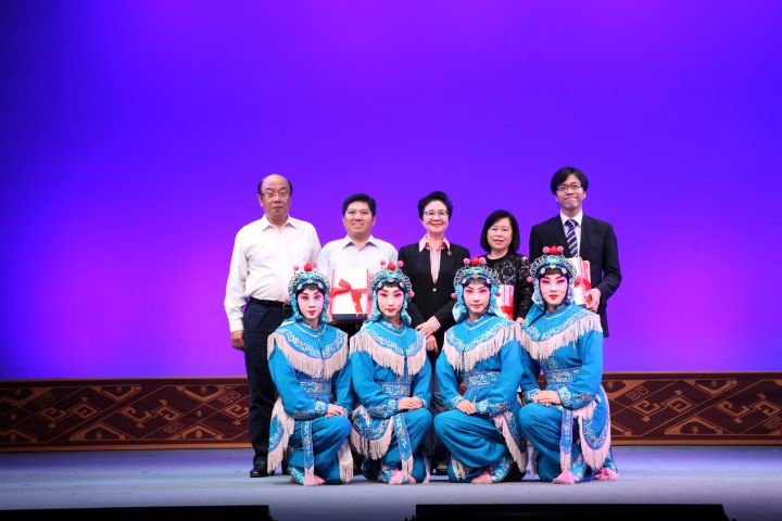 演出開始前,中國京劇藝術基金會向澳門博物館館長呂志鵬、澳門中央圖書館代表孔繁婷、澳門大學圖書館事務主管梁德海贈送京劇老藝術家談戲說藝的寶貴資料。黑龍江省京劇院院長于峰致詞時稱,非常高興這次有機會來澳演出,也承蒙各單位大力支持和重視,不僅代表對藝術團的信任,也是對京劇文化的肯定。京劇院定會續努力,把中國京劇藝術傳播開去,也祝願祖國繁榮昌盛,澳門社會和諧穩定發展。