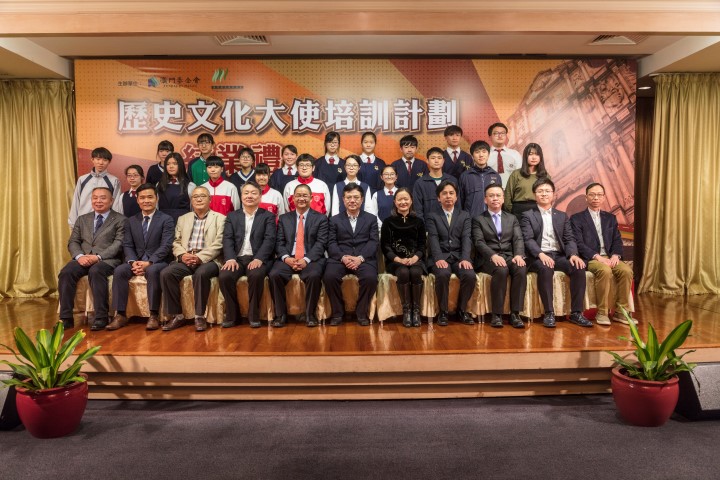 由澳門基金會、澳門歷史教育學會合辦,澳門理工學院協辦第一期“歷史文化大使培訓計劃”結業禮已於2018年2月9日假置地廣場酒店藍宮宴會廳順利舉行,第一期的課程一共培養了117名歷史文化大使。