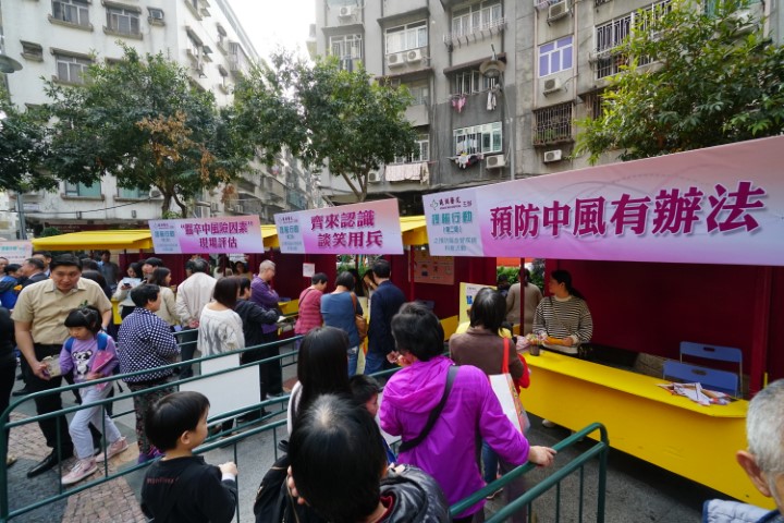 由澳門基金會與鏡湖醫院合辦的“護腦行動”(第二期)之預防腦血管疾病科普活動於12日在三盞燈休憩區舉行,現場設有展板和攤位遊戲介紹預防腦血管疾病資訊,普及大衆對腦血管疾病的認知,並有醫護人員示範預防中風的家居運動,吸引不少市民參與。