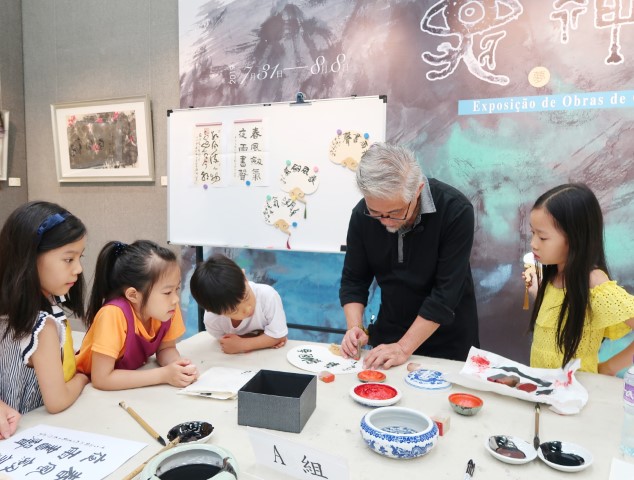 由澳門基金會主辦的澳門藝術家推廣計劃:“夢裏依稀──趙維富作品展”配套活動“筆墨妙趣──親子書法工作坊”已於8月3日下午在澳門教科文中心舉行,多對親子一起領略書藝創作的妙趣。