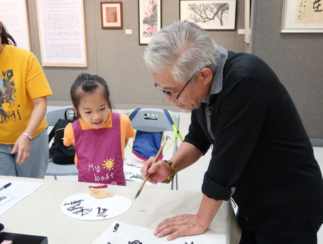 趙維富先生在活動上帶領親子們參觀展覽,講述自己開始從藝的過程、趣事及心得。之後他以隸書書體為引子介紹紙、筆、墨、印章的基本用法,以及進行練習並臨摹他的作品“春風劍氣,夜雨書聲”。最後大家在別緻的祥雲宣紙扇上嘗試創作,做成一件既漂亮又實用的作品。活動結尾大家拿着作品與老師拍照留念。