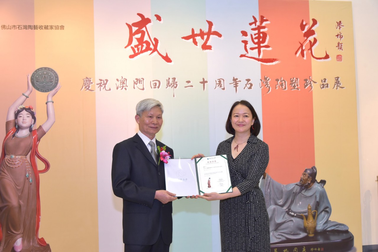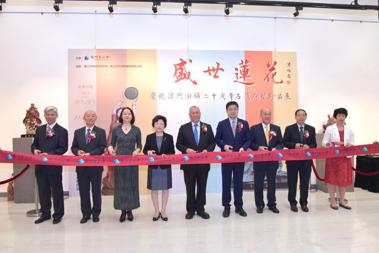 由澳門基金會主辦,佛山市陶瓷美術學會、佛山市石灣陶藝收藏家協會協辦的“盛世蓮花──慶祝澳門回歸二十周年石灣陶塑珍品展”已於2019年10月30日(星期三)下午6時30分在澳門教科文中心展覽廳揭幕,展出亞太地區手工藝大師劉澤棉、中國工藝美術大師劉炳、中國陶瓷藝術大師劉雪玲領銜的數十位國家級、省級大師精心創作的代表性陶藝珍品逾50件/套,供市民免費參觀欣賞。