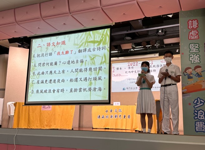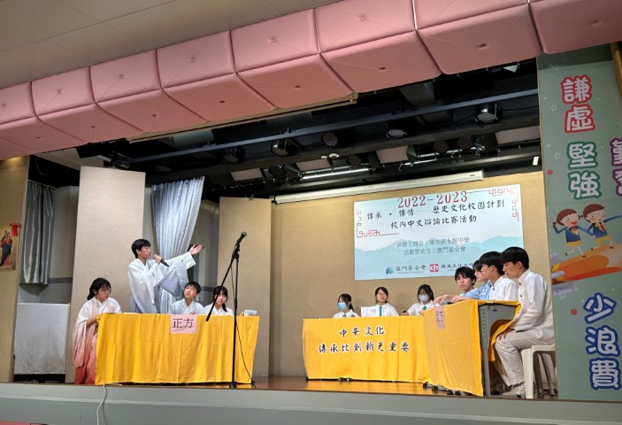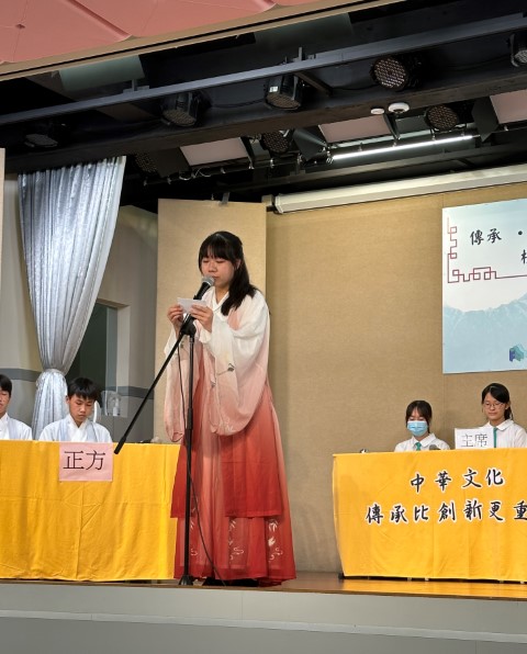 是次表演賽的辯題為“中華文化傳承比創新更重要”,參賽學生爲該校中二至中四學生。活動當日,正反雙方的辯員分別穿上漢服及五四青年服飾,代表着文化的“傳承”與“創新”兩種思維模式。賽事節奏明快,緊扣觀眾情緒,現場掌聲不絕,經過雙方一番唇槍舌劍,最終由反方隊伍勝出。比賽亦加入了中華文化現場問答遊戲環節,在座學生積極搶答,氣氛熱烈。