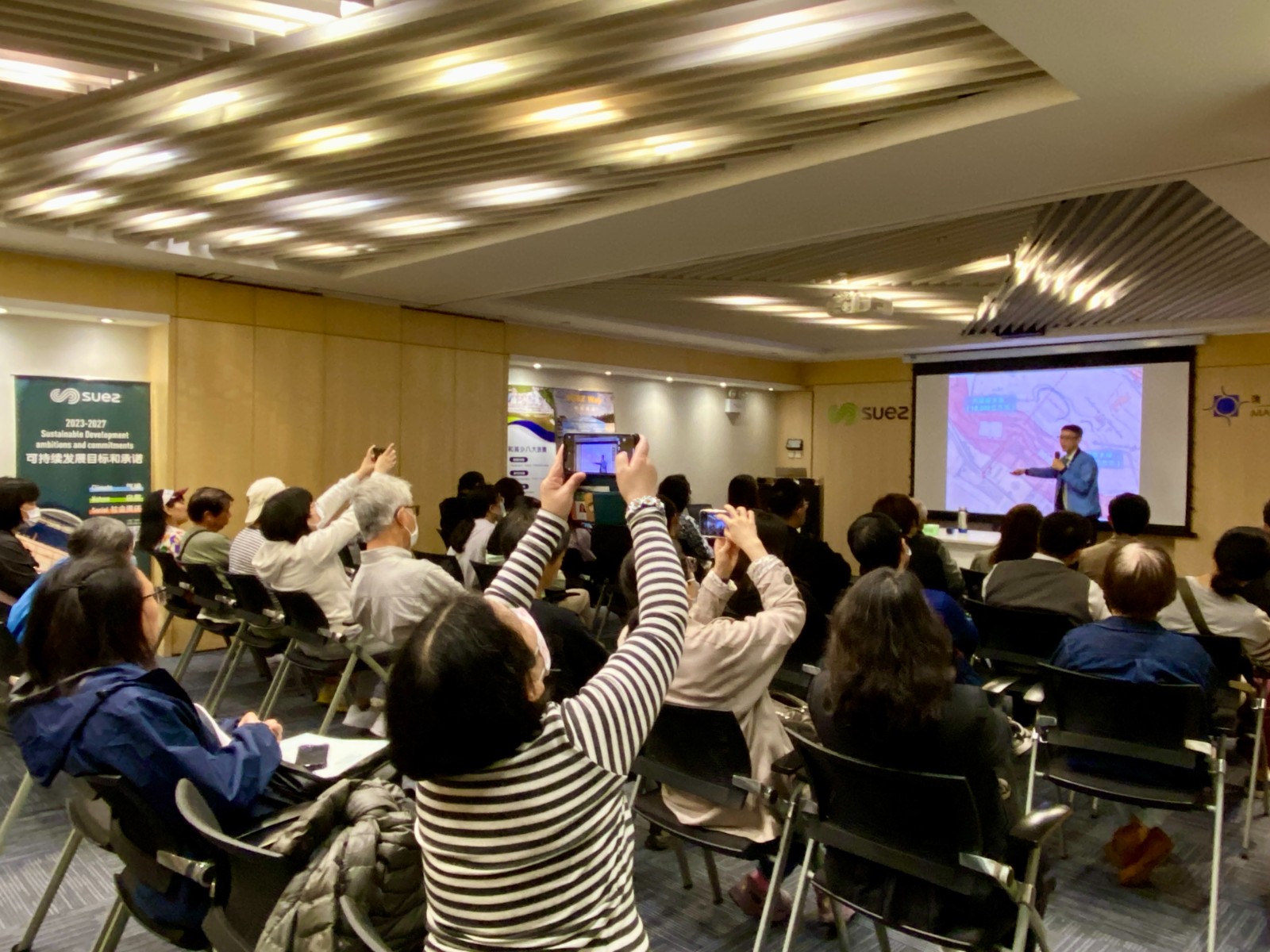 首場講座由遺產學會副會長勞加裕主講“從井泉到西江水——澳門百年供水歷程”,從澳門的水井、山泉和銀坑水說起,講者分享了早期澳門尚未有自來水時,澳門人的用水習慣和由“水”引伸的獨特行業和企業,如送水業、泡水館,後來由於人口、疫症以至社會經濟的發展,供水成為了公共的議題,而隨著自來水的出現,帶來了新的供水系統,但也經歷了“自來水”與“天然水源”拉鋸的特別時期。隨後因應水荒的頻繁發生,澳門開拓了新的供水源頭──內地供澳原水,而透過水庫、跨海水管、水廠等的建設和優化,成就了今天相對完善的供水系統。