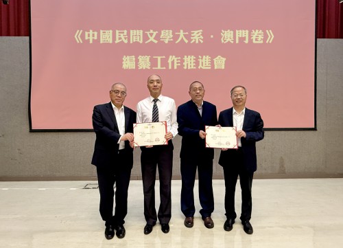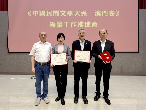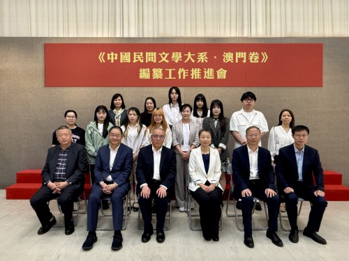 由中國民間文學大系出版工程領導小組辦公室、中國民間文藝家協會、澳門基金會聯合主辦的《中國民間文學大系・澳門卷》(下稱《澳門卷》)編纂工作推進會,於四月二日上午九時三十分在澳門教科文中心舉行。會議旨在全面部署《澳門卷》編纂工作,凝聚內地與澳門學術力量,系統挖掘、整理與傳承澳門民間文學瑰寶。