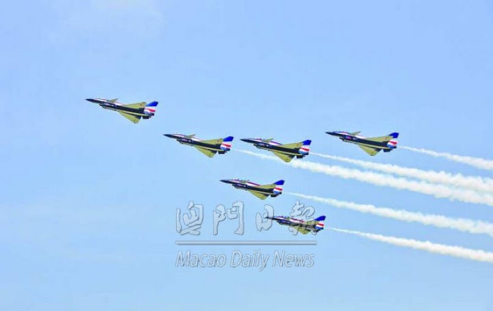 隨後,空軍航空大學“天之翼”飛行表演隊駕駛初教-6飛機,完成了風車隊形、飛鳥隊形、雁隊、雙機俯衝上升轉彎、四機六米高度通場等動作;“紅鷹”飛行隊則以機群壯觀、滾轉多樣、變換巧妙、立體展現的表演特點展示了八機編隊表演、單機超低空飛行等動作,甚為震撼。被譽為中國“藍天儀仗隊”的空軍“八一”飛行表演隊壓軸登場,但見六架殲-10完成了直線超低空通場、大坡度盤旋、六機俯衝上升轉彎等高難度動作。