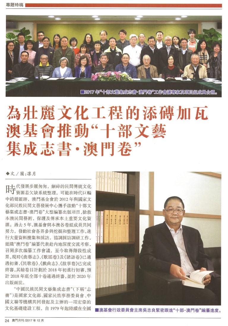 為壯麗文化工程的添磚加瓦 澳基會推動“十部文藝集成志書·澳門卷”
