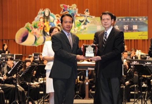 “As Melhores Músicas de Joe Hisaishi - Concerto Aberto ao Público da Fundação Macau”, organizado pela Fundação Macau e Associação de Regentes de Banda de Macau (sigla “MBDA”) teve lugar no Grande Auditório do Centro Cultural de Macau no dia 14 de Setembro de 2012, sexta-feira, às 8 horas da noite. A cerimónia de corte de fita foi presidida por Zhang Xiaoguang, Sub-director do Departamento de Cultura e Educação do Gabinete de Ligação do Governo Central da RAEM, Zhang Yunfei, Sub-director do Departamento dos Assuntos Gerais do Comissariado do Ministério dos Negócios Estrangeiros na RAEM, Au Weng Chi, Membro do Conselho de Administração da Fundação Macau, Wong Tai Lok, Chefe do Chefe do Departamento de Subsídios e Cooperação, Leong Nga Tou, Chefe do Centro UNESCO de Macau, ambos da Fundação Macau, Leong Kin Hang, Presidente da MBDA, Leong Pui Long, Maestro da Banda Sinfónica Juvenil de Macau. Muitos pais acompanharam os filhos e os bilhetes para o concerto esgotaram.