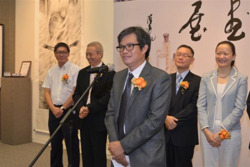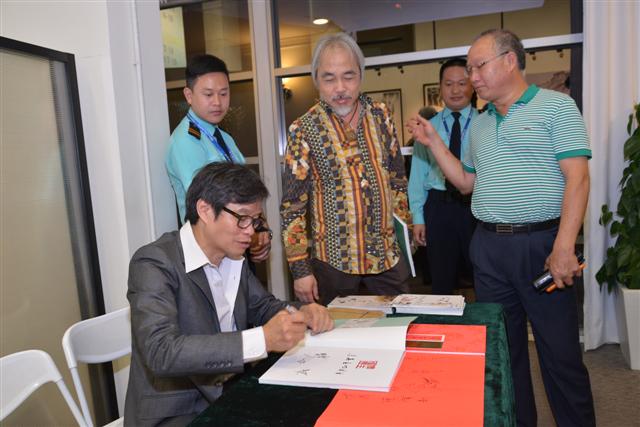 A Cerimónia de Inauguração contou com a presença de um conjunto de ilustres convidados de honra, nomeadamente, Liu Xiaohang, Chefe do Departamento de Cultura e Educação do Gabinete de Ligação do Governo Popular Central da RPC na RAEM, Zhong Yi Seabra de Mascarenhas, Membro do Conselho de Administração da Fundação Macau, Lok Po, Presidente do Diário Ou Mun Iat Pou, Chui Sai Peng, Presidente da Associação dos Calígrafos e Pintores Chineses «Yu Un» de Macau, Lai Ieng, Presidente da Associação de Artistas de Belas-Artes de Macau, Lok Hei, Director da Associação de Promoção do Desenvolvimento da Indústria Cultural de Macau, Lau Fu Ip, Presidente da Associação de Caligrafia de Deleite (Macau), Chan Chi Wai, Presidente da Associação de I Ching de Macau, Sio Chun Iun, Presidente da Associação dos Calígrafos e Escultores de Selos de Macau e Chan Kai Chon, Doutorado em História de Belas-Artes da “China Central Academy of Fine Arts”, que presidiram ao corte-da-fita em conjunto com o Sr. Chang Kuok Meng.