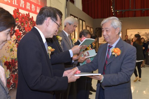 O Sr. Liang Qigen, Director do Instituto de Caligrafia e Pintura do CCPPC do Bairro Jianghai do Município Jiangmen fez uso da palavra e disse que “valoriza a dedicação e o entusiasmo do Ng Iok Kong a esta Arte” e enalteceu o espírito do Artista revelado pelas suas obras.