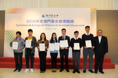 Com vista a distinguir os residentes de Macau que obtiveram bons resultados, tanto os alunos com o melhor aproveitamento escolar de Macau como os participantes em concursos realizados fora de Macau, realizou-se a “Cerimónia de Entrega de Prémios da Fundação Macau 2019”. Na Cerimónia, foram entregues certificados a 7 candidatos contemplados com o “Prémio para Talentos de Macau 2019” e a 55 contemplados com a “Bolsa de Mérito Especial” referente ao ano lectivo 2019/2020.
