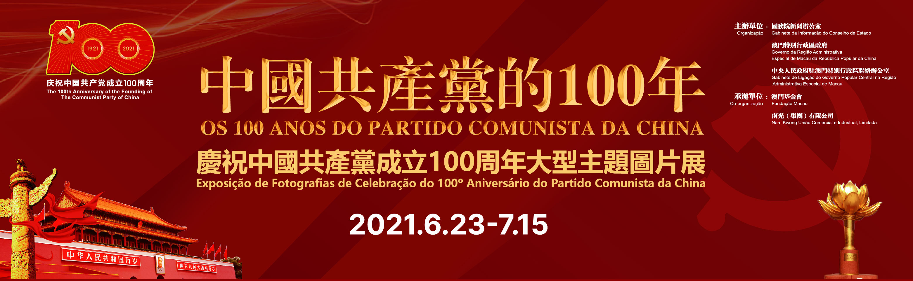 由國務院新聞辦公室、澳門特別行政區政府、中央人民政府駐澳門特別行政區聯絡辦公室主辦,澳門基金會、南光(集團)有限公司承辦的“中國共產黨的100年——慶祝中國共產黨成立100周年大型主題圖片展”已圓滿結束,但為進一步延續學習中國共產黨百年奮鬥的光輝歷史的社會氣氛,主辦單位為展覽特設了線上展覽館,展覽館於今日正式啟動。