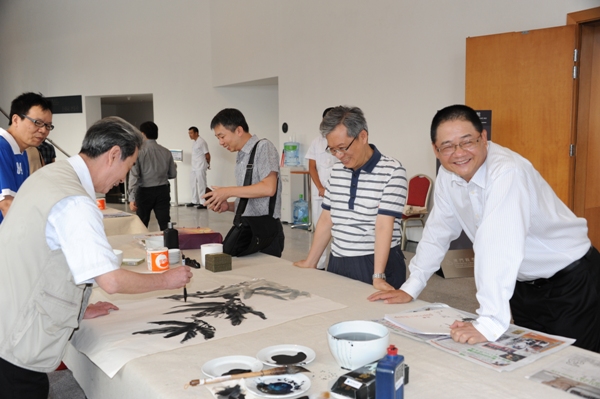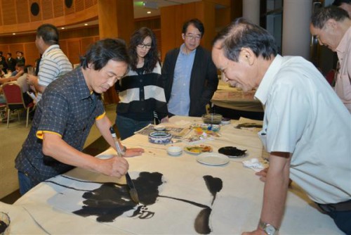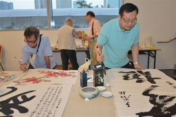 小城雖小,熱衷書畫和攝影藝術的藝術家和愛好者卻很多,相關社團更如繁花吐艷,藝文活動處處綻放。不過能將衆多藝術家聚首一堂的機會並不多,澳基會去年開展“澳門藝術家推廣計劃”系列活動至今一年,昨日下午於科學館會議廳舉辦雅集活動,逾一百名書畫界人士踴躍支持,盡情以筆墨丹青、鉛筆水彩為媒交流聯誼,還邀得內地藝術家到場集體創作,短短一個下午,創作出數十幅精品佳作,藝術火花精彩迸發,氣氛活躍。
