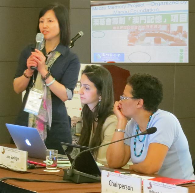 澳門基金會代表楊開荊獲邀在會議上介紹澳門情況,她引介了該會啟動“澳門記憶”項目的進展,以及向澳門理工學院學生推行“世界記憶研學”計劃的經驗,並分享了學生挖掘整理的記憶項目。委員會主席Helena R. Asamoah-Hass及不少委員對於澳門基金會推動社會人士參與,並通過課堂組織學生學習“記憶工程”等成績表示肯定並感到很大興趣,更期望“澳門記憶’能順利推出,同時培養更多青年參與文獻保育、信息管理的行列,令青年人認識和了解保護文化的重要意義。
