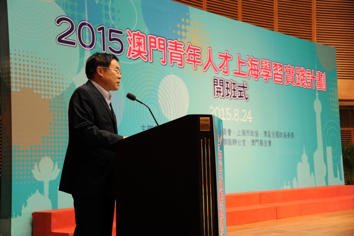 “澳門青年人才上海學習實踐計劃”由全國政協港澳台僑委員會、中聯辦、澳區全國政協委員、上海市政協及澳門基金會合辦。合辦單位於8月24日下午三時在科學館會議中心會議廳舉行開班儀式,全國政協副主席何厚鏵、全國政協港澳台僑委員會主任楊崇匯、中聯辦副主任陳斯喜、上海市政協主席吳志明,全國政協常委廖澤雲、顏延齡,全國政協文史和學習委員會副主任梁華,全國政協經濟委員會副主任兼澳門基金會監事會主席崔世昌、澳門基金會行政委員會副主席張裕等出席。