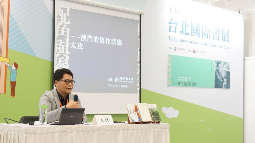 書展期間,本會邀請“澳門文學叢書”系列的《神跡》作者黃春年(筆名︰太皮)舉辦題為“配角與邊緣——澳門的寫作狀態”的講座。講者由自身成長經歷及寫作經驗出發,形象地描繪澳門的城市性格︰以彈丸之地夾在中國內地及香港兩大華人文化“中心”之間,常顯得“配角與邊緣”,太皮坦言澳門的“創作土壤並不豐潤”,但寫作環境卻充滿人文情懷,澳門的寫作人深植社區︰“包括我在內,我們都有離文學很遠的工作,我的寫作朋友有的是退役警察,有的是保安公司的管理層,也有的在賭場工作,但我們都在寫。” 近年,在政府和民間的支持推動下,有更多發表作品的渠道,如本會組織出版的“澳門文學叢書”,系統地結集澳門作品,傳承澳門文學;加上新媒體興起提供平台,以及澳門作者的奮進,相信澳門文學可以在夾縫裡開花。太皮寄語澳門文學是“最在地的也是最世界的。澳門雖小,但小地方也可以有大文學,書寫澳門故事仍是非常重要。”講座吸引了逾60位台灣讀者參與,座無虛席,讀者對澳門文化甚為好奇,發問者眾,討論氣氛熱絡。