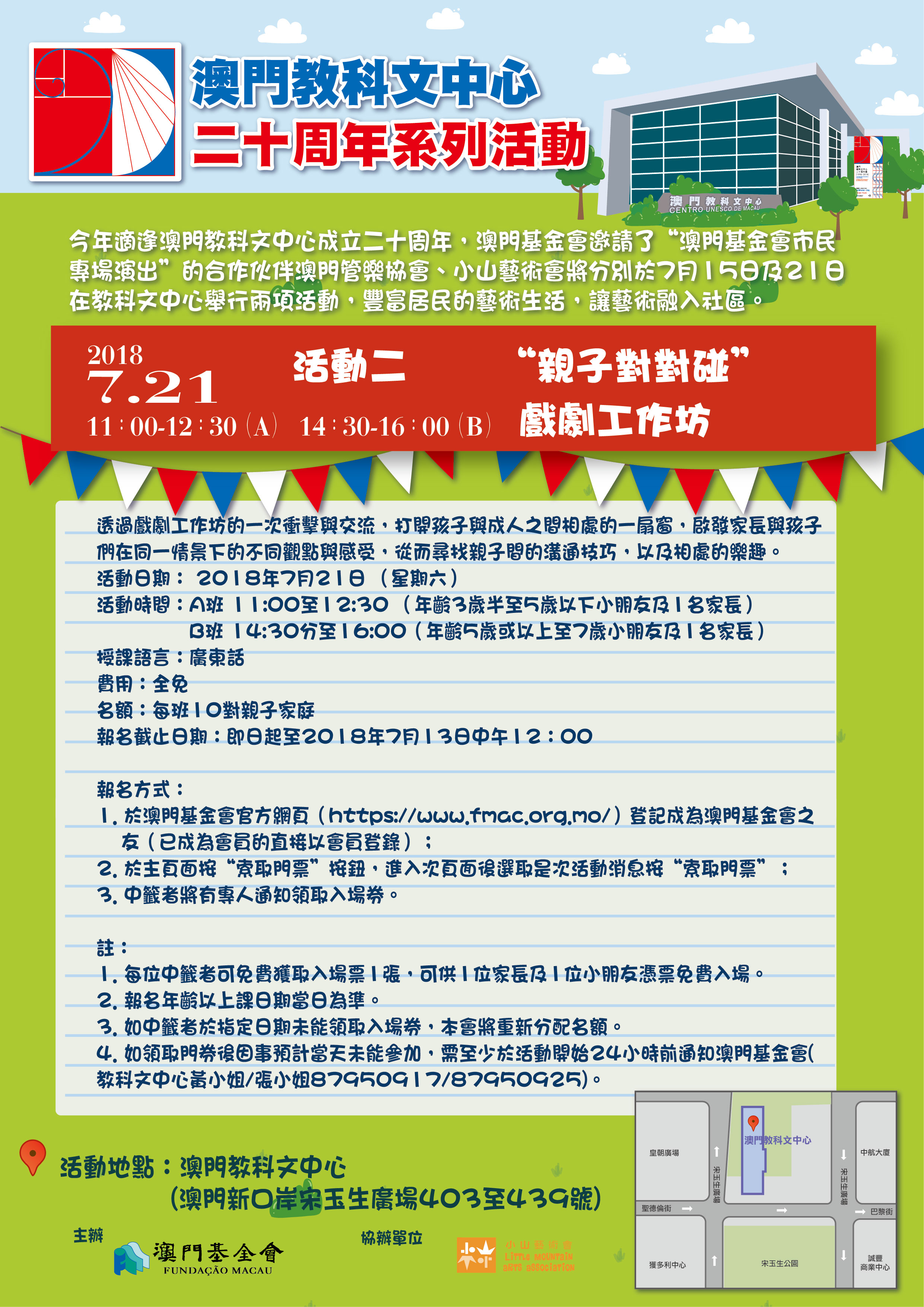 活動詳情及報名方式請查詢澳門基金會主頁www.fmac.org.mo ,查詢請致電87950917(黃小姐)/87950925(張小姐)。