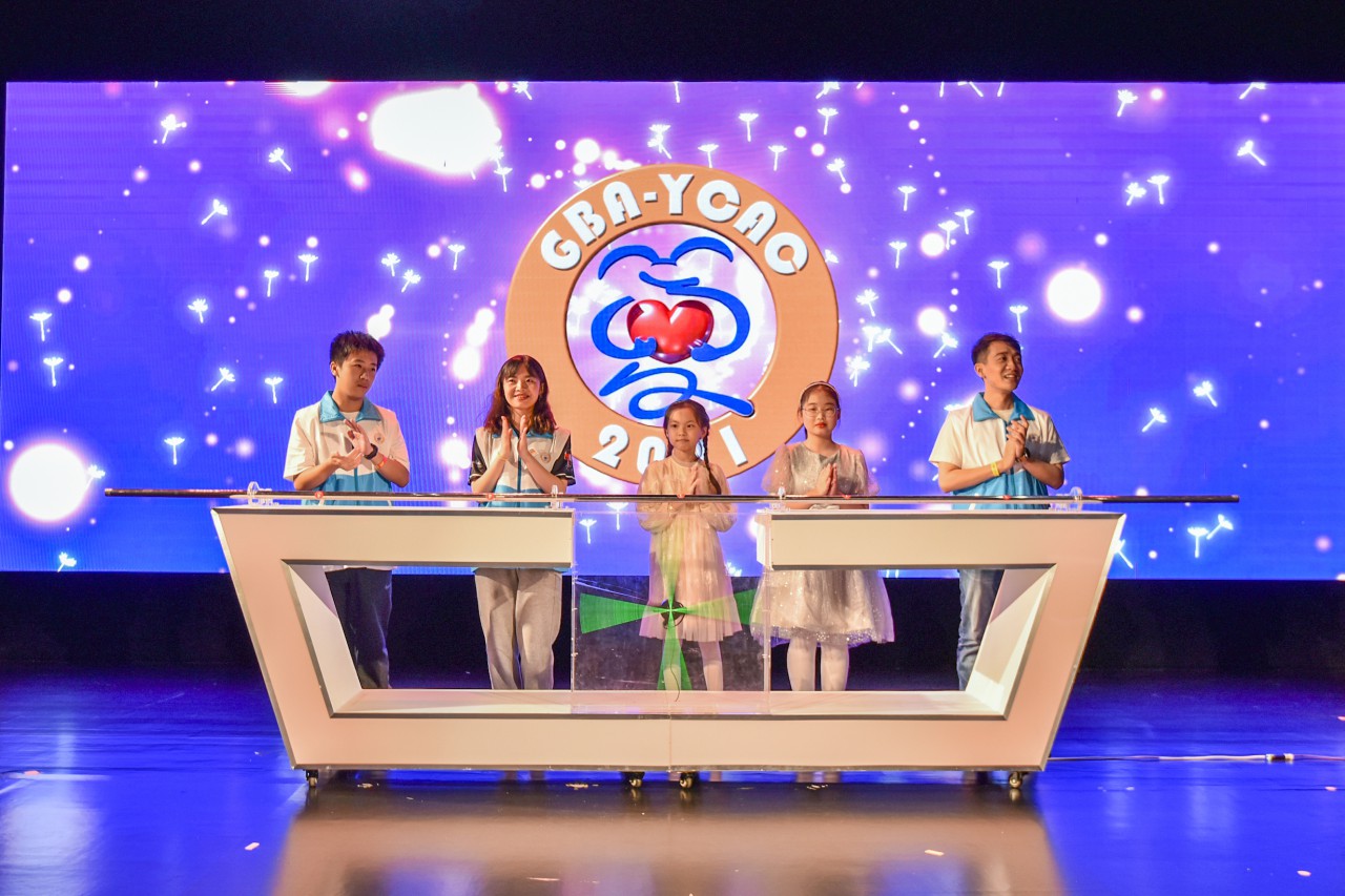 最後,廣東、香港、澳門和臺灣的5位青少年代表推動啟動杆,與線上線下的嘉賓共同見證2021年粵港澳大灣區青少年公益年會及系列公益活動拉開序幕。