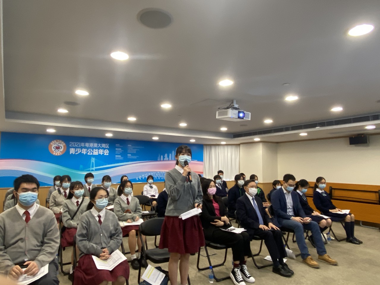 澳門基金會組織鏡平中學及教業中學共約30名師生於澳門分會場在線參與啟動儀式,儀式上,來自廣東、香港、澳門和臺灣的青少年代表分享了他們的公益故事和志願服務經歷,講述了自己的公益感悟和收穫的人生精彩。