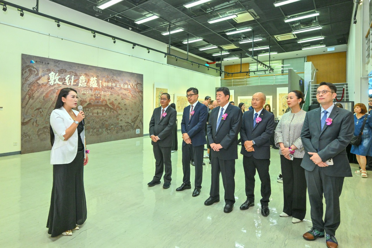 劉璟致詞表示,該展從構思到呈現,充滿奇妙的巧合,是偶然也是必然,既是對傳統藝術的虔誠致敬,也是對古代匠人精神的細緻揣摩,更是她嘗試以當代視角解讀敦煌藝術的一次探索,部分展品也是其在澳門求學期間的創作,展覽最終在澳門高度重視與無私幫助下得以在這片文化沃土上生根發芽。因此,這次展覽不僅是一次階段性的匯報,更是在澳門開啟的全新起點,具有特別意義。