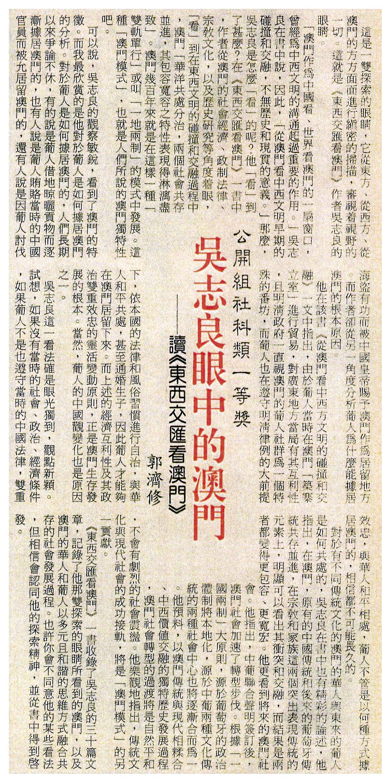 吳志良眼中的澳門──讀《中西交匯看澳門》