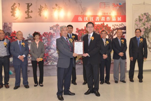 O Sr. Liang Qigen, Director do Instituto de Caligrafia e Pintura do CCPPC do Bairro Jianghai do Município Jiangmen fez uso da palavra e disse que “valoriza a dedicação e o entusiasmo do Ng Iok Kong a esta Arte” e enalteceu o espírito do Artista revelado pelas suas obras.