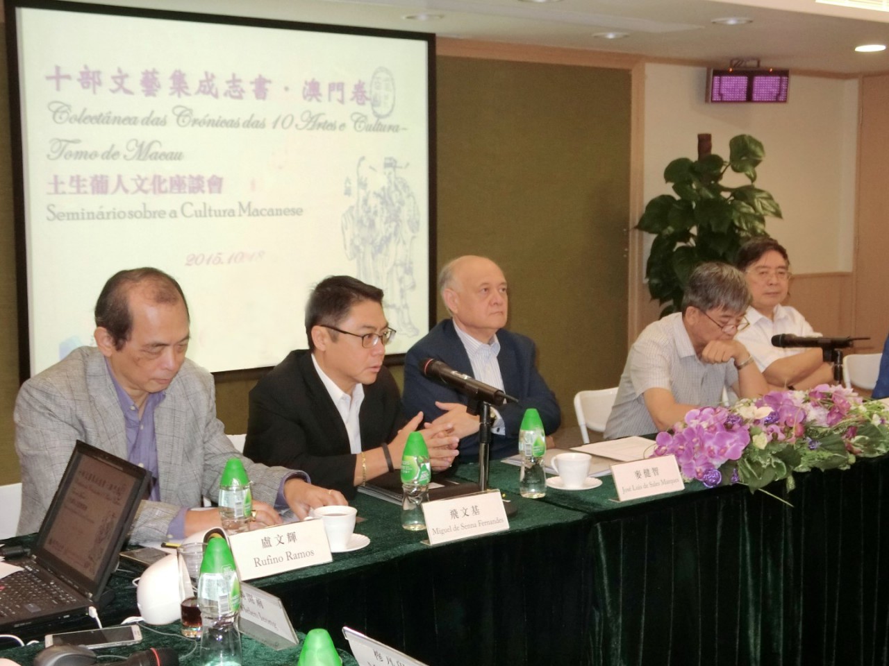 Com o intuito de fazer um levantamento e organizar os recursos populares de Macau, com o objectivo de conservar a cultura tradicional da comunidade macaense de Macau, a Fundação Macau organizou uma reunião alargada sobre o tema “Cultura Macaense” com representantes macaenses ligados a esta área para a edição da publicação  “Colectânea das Crónicas das 10 Artes e Cultura– Tomo de Macau”. Foram convidados os representes macaenses, as equipas de compilação da Colectânea de Macau e os especialistas do Ministério Cultural da China, para em conjunto trocarem opiniões relativamente à direcção e trabalhos a desenvolver, em concreto, quanto à recolha de materiais das artes macaenses, nomeadamente, cantigas, danças, provérbios e frases idiomáticas, histórias colectivas, ópera, artes folclóricas, etc., de maneira a que sejam protegidos e transmitidos a futuras gerações.