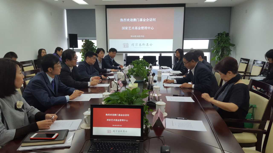 No dia 19 de Outubro, um grupo da Fundação Macau composta por 8 membros, nomeadamente, o Dr. Wu Zhiliang, Presidente do Conselho de Administração (CA); Ho Kuai Leng e Au Weng Chi, Membros do CA; Cao Jinfeng, Secretário-Geral, entre outros, efectuou uma visita à China National Arts Fund, em Beijing. O grupo foi recebido pelo Director do Fundo, o Sr. Cai Wu, que deu as informações aos visitantes sobre o Fundo e o caminho a seguir para o seu desenvolvimento. O “China National Arts Fund” e a Fundação Macau assinaram um Protocolo de Cooperação entre as duas partes, com vista a reforçar a cooperação e os futuros intercâmbios bilaterais.